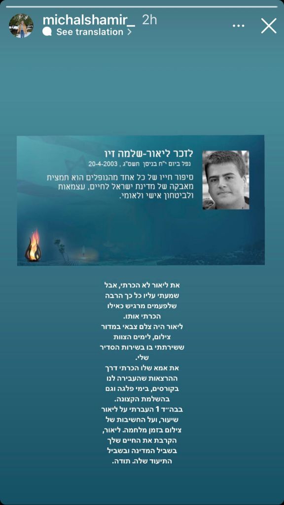 הסיפור של ליאור זיו, צלם בדובר צה״ל שנפל בזמן שתיעד פעילות מבצעית, הולך איתי לכל מקום בעולם כבר לא מעט שנים.זו שנה נוספת שליאור מצטרף אליי למסעות בעולם, ואני זוכה לספר את הסיפור שלו לאנשים חדשים. השנה, בפני ניצולי שואה, חיילים בודדים ממונטריאול, ועוד 150 תלמידים ממונטריאול במסע ״מצעד החיים״, ששבוע שעבר ביקרו במחנות השמדה בפולין, והיום חווים את יום הזיכרון בארץ.